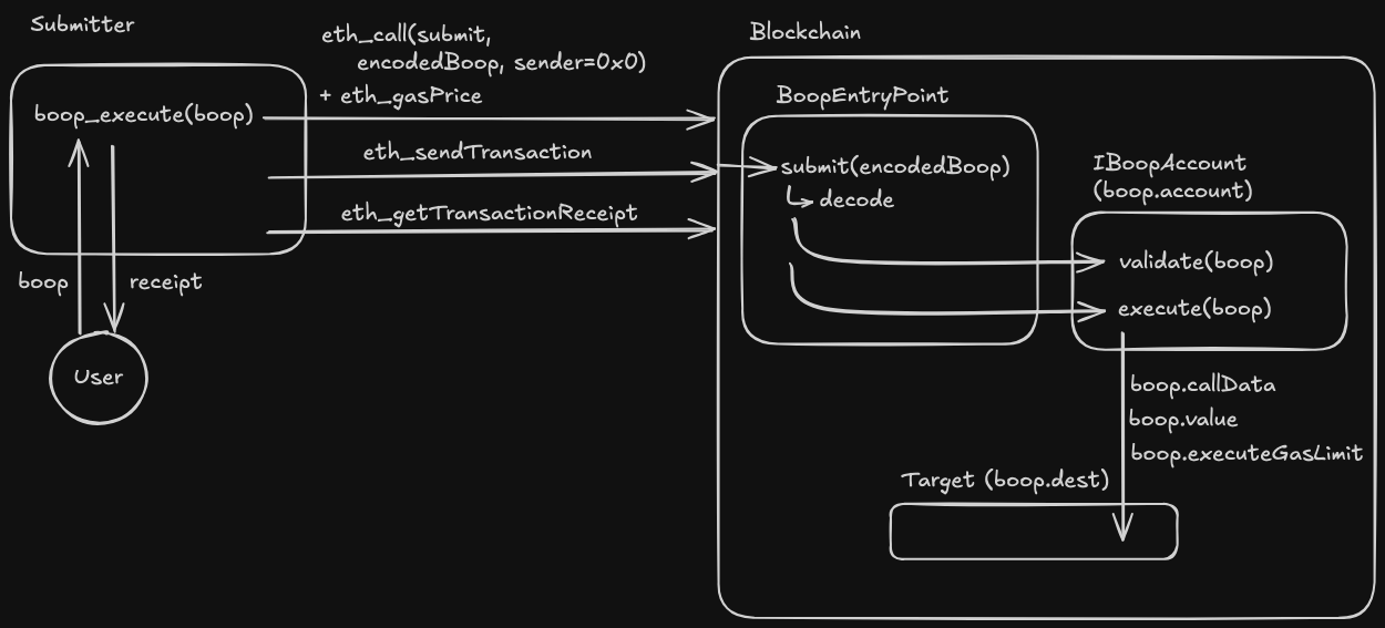 executerequest to the submitter, to which a boop (transaction) is attached. -